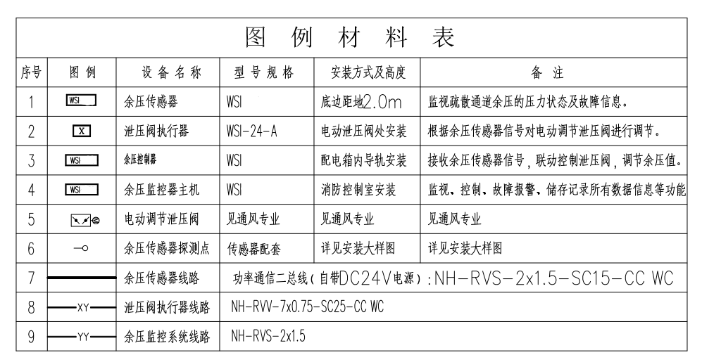 6.WSI余壓傳感器與WSI余壓控制器之間使用J-BUS功率通信二總線,J-BUS通信總線(自帶DC24V電源);RVS-2*1.5mm-SC15.