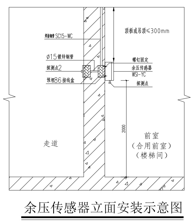 余壓傳感器立面安裝示意圖  Installation of Surplus Pressure Sensor Facade