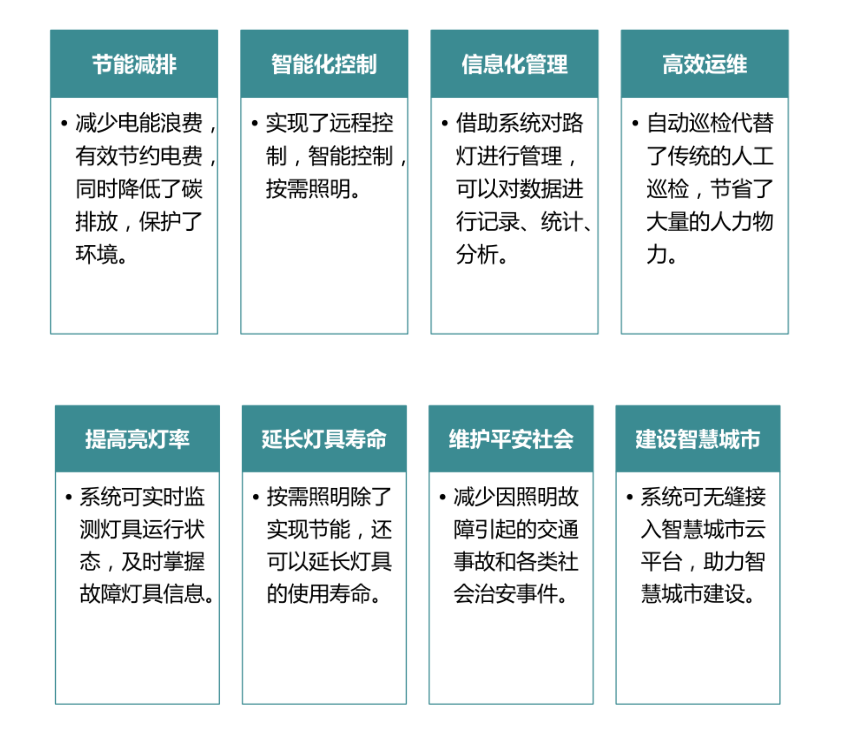 ?狀態(tài)查詢:可隨時(shí)查詢路燈的開關(guān)狀態(tài)、亮度、電流、電壓、功率等數(shù)據(jù)。