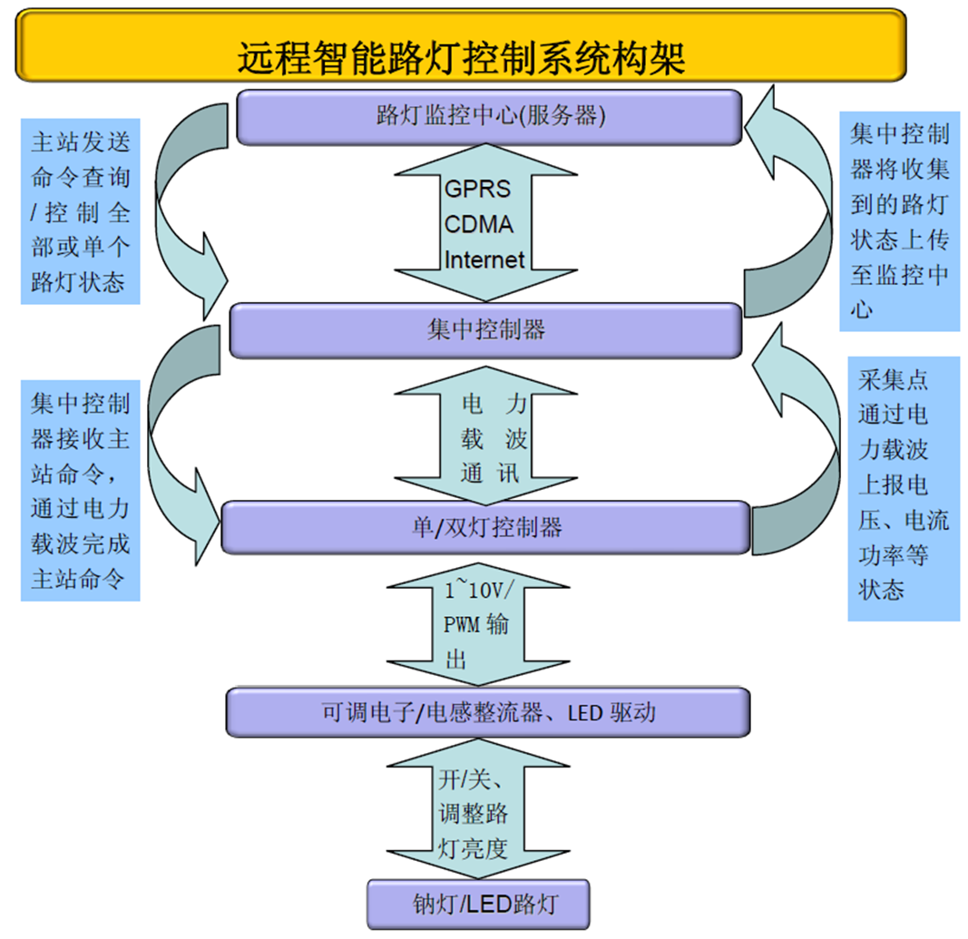 由于傳統(tǒng)路燈的弊端:如能源浪費(fèi)嚴(yán)重、管理手段單一、信息化水平低下、缺乏故障主動(dòng)報(bào)警機(jī)制、故障燈位置難以發(fā)現(xiàn)等一系列問(wèn)題。近幾年來(lái)國(guó)內(nèi)很多城市都已經(jīng)開(kāi)始采用智能路燈控制技術(shù),對(duì)傳統(tǒng)路燈進(jìn)行智能化改造。隨著城市建設(shè)的快速發(fā)展,道路基礎(chǔ)照明設(shè)施數(shù)量不斷地增加,能源的供需矛盾越來(lái)越突出,節(jié)電節(jié)能、綠色照明的要求越來(lái)越迫切,越來(lái)越高。路燈的開(kāi)關(guān)方式采用光照度控制或微電腦定時(shí)器控制,設(shè)備長(zhǎng)時(shí)間運(yùn)行后會(huì)出現(xiàn)開(kāi)關(guān)燈的時(shí)間不準(zhǔn)確、時(shí)間不統(tǒng)一現(xiàn)象。另外,傳統(tǒng)的路燈方法是靠維修人員在開(kāi)燈時(shí)間開(kāi)車巡視,發(fā)現(xiàn)設(shè)備故障才去解決,由于人力物力和維修人員責(zé)任心的問(wèn)題,常常出現(xiàn)局部區(qū)域路燈長(zhǎng)期不亮的情況,由此帶來(lái)的社會(huì)問(wèn)題將給城市管理者帶來(lái)極大的負(fù)面影響。路燈是城市重要的公用設(shè)施,提供自動(dòng)化程度高、運(yùn)行可靠、高效節(jié)電、使用維護(hù)方便的道路照明集中控制系統(tǒng),是綠色節(jié)能、管理智能化與現(xiàn)代化的必然要求。路燈照明急需一套智能化自動(dòng)化且簡(jiǎn)單實(shí)用的控制系統(tǒng)對(duì)城市路燈實(shí)現(xiàn)遠(yuǎn)程集中監(jiān)控,以提高管理效率,降低路燈的管理和維護(hù)成本,智能路燈控制器由此誕生!智能路燈控制器又稱“智能型路燈控制器”、“路燈智能控制器”,是采用物聯(lián)網(wǎng)技術(shù)、云計(jì)算技術(shù)以及電力線載波通信技術(shù),對(duì)路燈實(shí)現(xiàn)開(kāi)關(guān)、調(diào)光、分組控制、定時(shí)控制、經(jīng)緯度控制、電量采集、故障報(bào)警、遠(yuǎn)程診斷維護(hù)、數(shù)據(jù)報(bào)表、節(jié)能管理等功能的智能型控制終端。下面,小編將為您介紹幾款暢銷國(guó)內(nèi)的智能路燈控制器和相關(guān)的智能路燈控制系統(tǒng)吧! 智能路燈控制系統(tǒng)功能